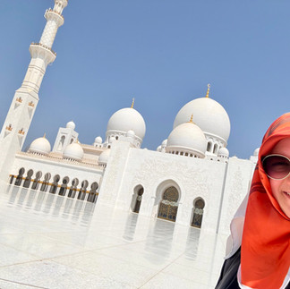 Obwohl ich extra meinen Sarong aus Indonesien eingepackt hatte, ist dieser in meinem großen Rucksack im Flughafen. Aziz leiht mir also eine Abaya und ich kaufe mir vor der Moschee ein kleines Kopftuch, um Zutritt zum Gelände der streng gläubigen Moschee zu erhalten. Mehrere Hinweisschilder machen aufmerksam, wie man sich vorher bedecken muss, was erlaubt ist und was nicht.